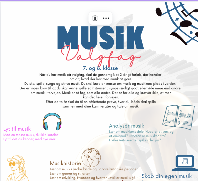 Musikfaget er en gave til tværfagligt samarbejde. Udover, at det kan fungere som en løftestang til andre fag, så er den auditive vej til læring, en gave til stort set alle andre fag. Kun fantasien sætter grænsen.