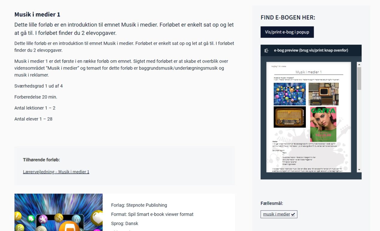 Hvis lærervejledningen er i én e-bog for sig selv, vil du altid kunne finde den under et forløb, se eksempel herunder: