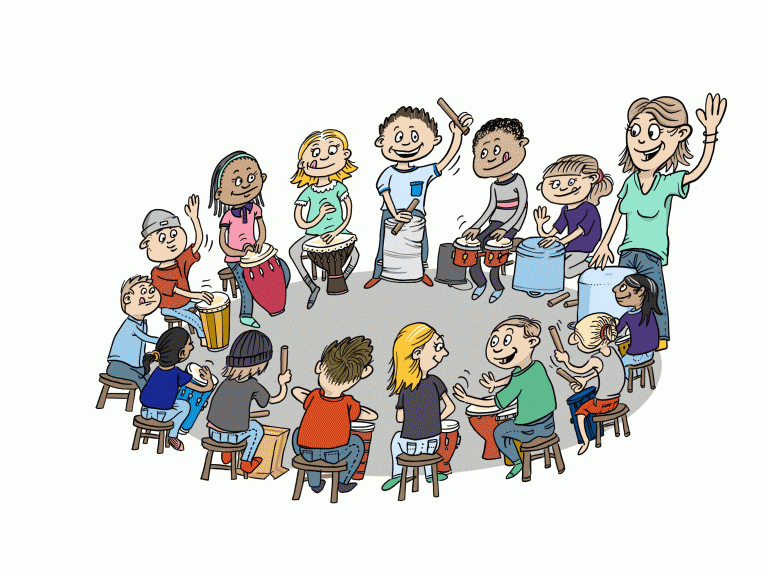 Samba, talekor, rytmekanon, stomp og improvisation. Skræddersyet til mellemtrinnet og de instrumenter, der er i de fleste musiklokaler. Enkelt og let at gå til, med både noder og instruktionsvideoer.